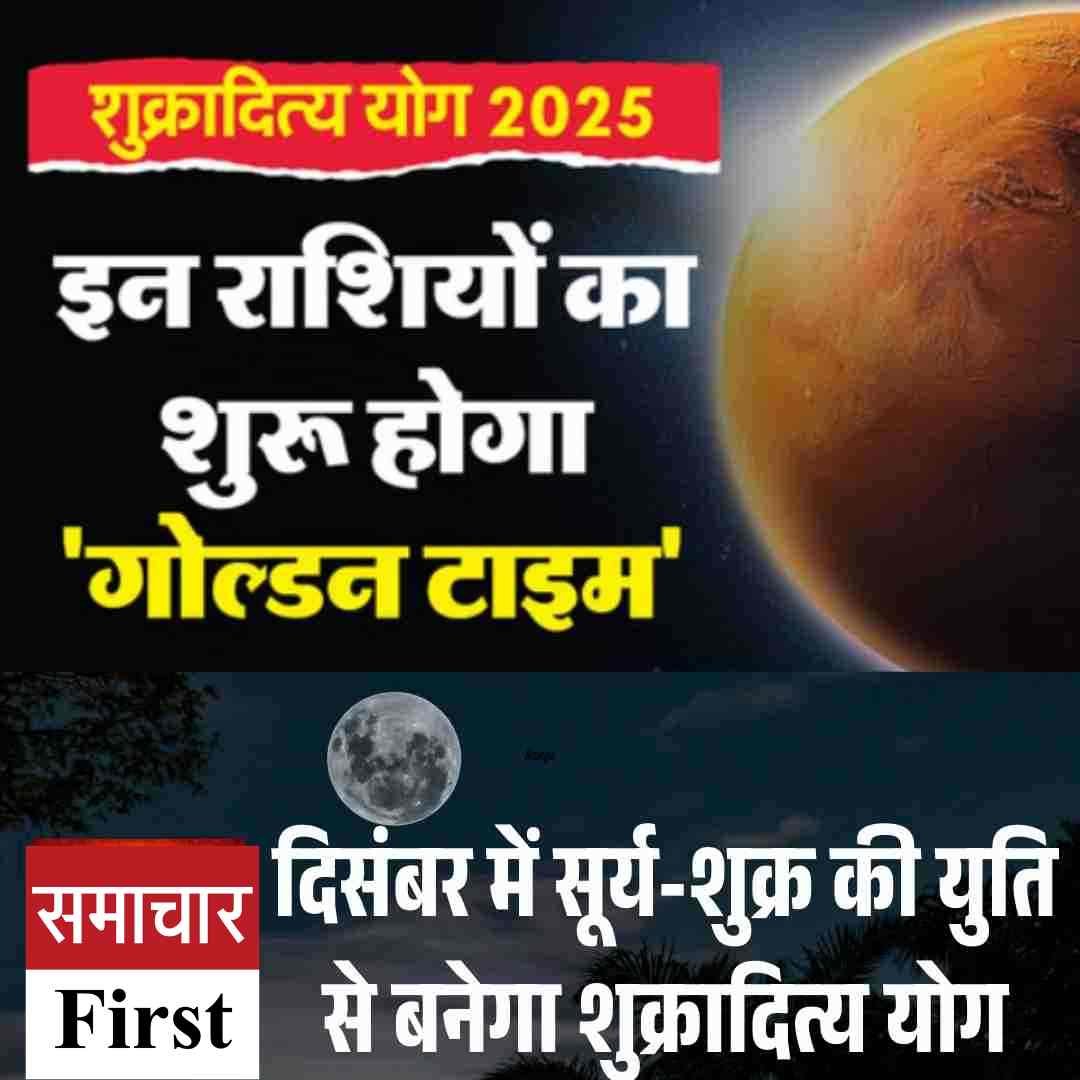 इस वर्ष दिसंबर में यह बेहद शुभ संयोग बन रहा है। 20 दिसंबर को शुक्र का धनु राशि में प्रवेश होगा, जहां सूर्य पहले से ही स्थित रहेंगे। इससे धनु राशि में सूर्य–शुक्र की युति बनेगी और शक्तिशाली शुक्रादित्य योग सक्रिय होगा। यह योग तीन राशियों—मिथुन, सिंह और तुला—के लिए बेहद कल्याणकारी सिद्ध होगा।