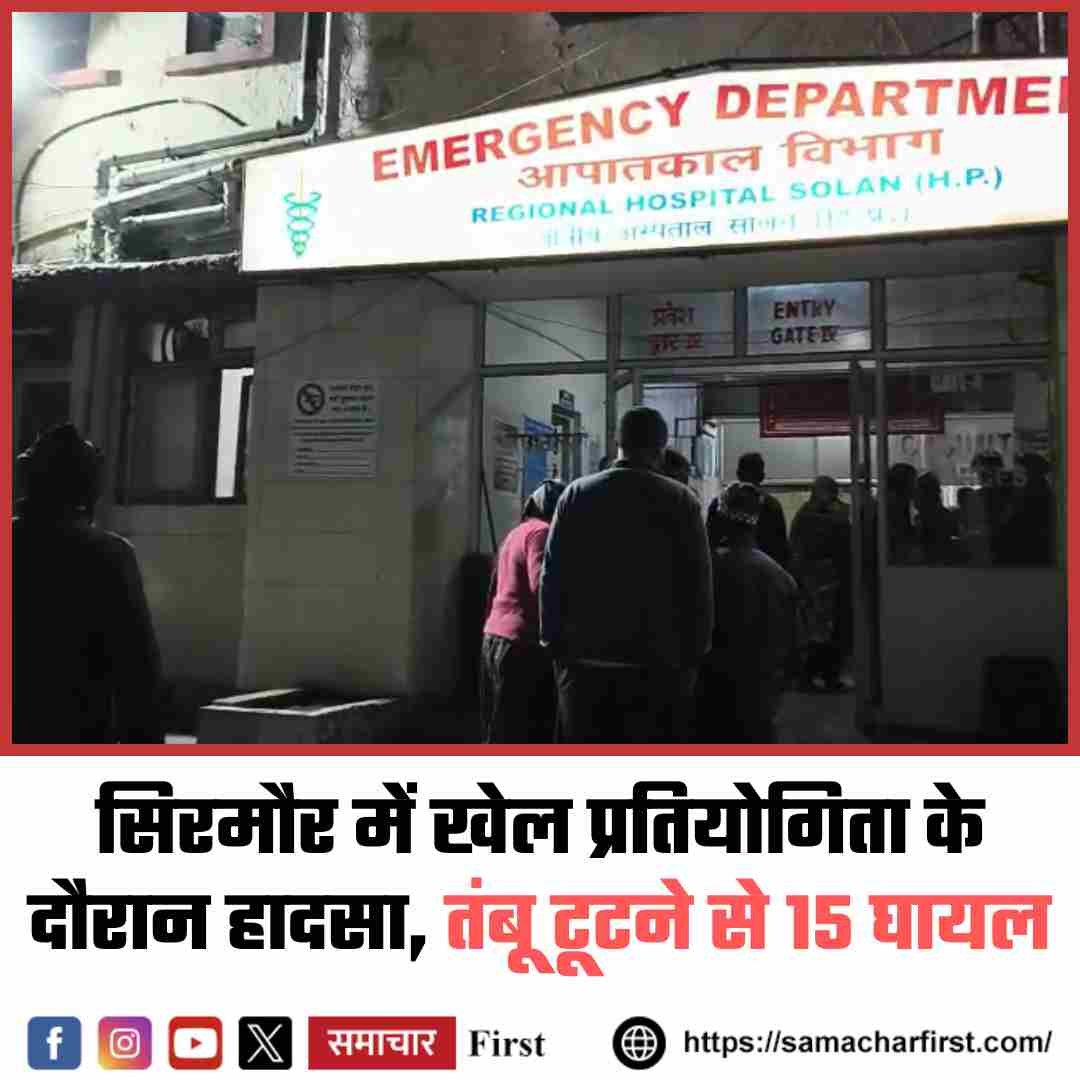 सिरमौर जिले के सिलाबाद क्षेत्र में रविवार देर शाम एक खेल प्रतियोगिता के दौरान बड़ा हादसा हो गया। प्रतियोगिता के दौरान लगाए गए तंबू की रस्सी अचानक टूट गई, जिससे एक पक्ष के करीब 15 लोग लगभग 10 फीट नीचे गिर गए। हादसे के बाद मौके पर अफरा-तफरी मच गई।