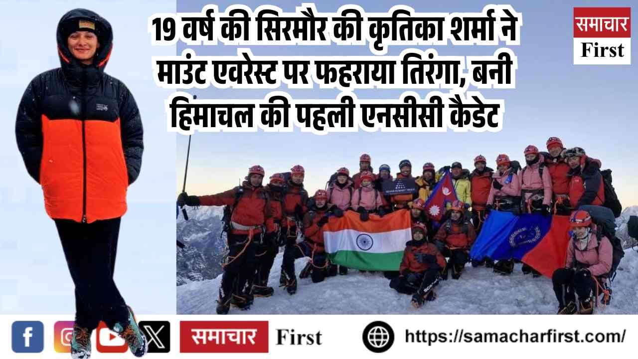 सिरमौर की कृतिका शर्मा ने माउंट एवरेस्ट पर फहराया तिरंगा, बनी हिमाचल की पहली एनसीसी कैडेट