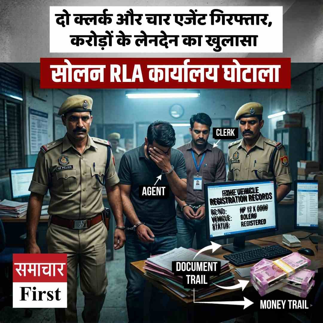 सोलन के क्षेत्रीय परिवहन एवं लाइसेंसिंग प्राधिकरण (आरएलए) में सामने आए बड़े फर्जीवाड़े मामले में पुलिस ने बड़ी कार्रवाई करते हुए दो क्लर्कों और चार एजेंटों को गिरफ्तार किया है। इस मामले में सोलन, बिलासपुर, मंडी, ऊना और कांगड़ा से जुड़े आरोपी शामिल हैं। जांच में सामने आया है कि बिलासपुर का क्लर्क गौरव भारद्वाज मुख्य आरोपी है, जिसने सोलन आरएलए की प्रणाली में फर्जी यूजर आईडी तैयार कर अवैध एंट्री और अप्रूवल का नेटवर्क खड़ा किया।