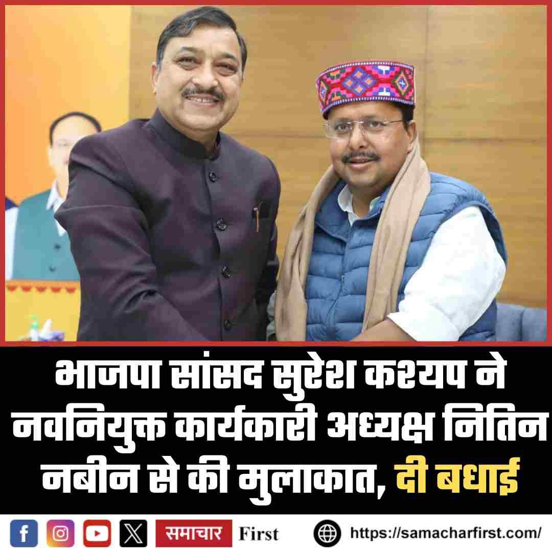 भाजपा सांसद सुरेश कश्यप ने नवनियुक्त कार्यकारी अध्यक्ष नितिन नबीन से की मुलाकात, दी बधाई