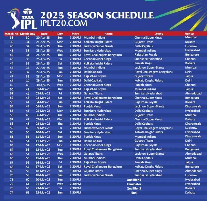 - 8 मई: पंजाब किंग्स बनाम दिल्ली कैपिटल्स