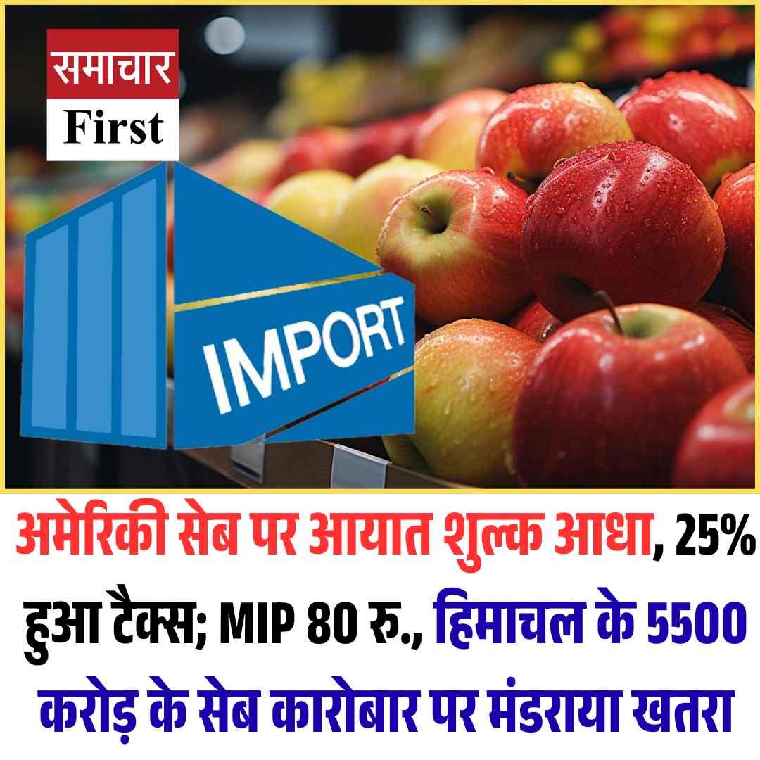 भारत-अमेरिका व्यापार समझौते के तहत अमेरिकी सेब पर आयात शुल्क 50 प्रतिशत से घटाकर 25 प्रतिशत कर दिया गया है, जबकि न्यूनतम आयात मूल्य (MIP) 80 रुपए प्रति किलो निर्धारित किया गया है। इसके बाद अमेरिकी सेब भारत के बाजार में लगभग 100 रुपए प्रति किलो की दर से पहुंच सकता है। इससे पहले न्यूजीलैंड और यूरोपियन यूनियन के सेब पर भी आयात शुल्क घटाया जा चुका है।