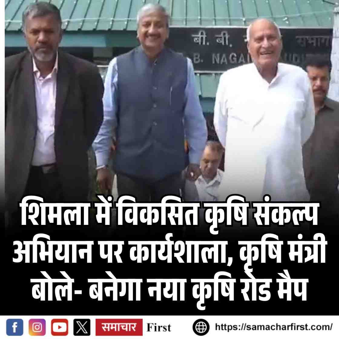 शिमला में विकसित कृषि संकल्प अभियान के तहत आज एक महत्त्वपूर्ण कार्यशाला का आयोजन किया गया। इस कार्यशाला का उद्देश्य प्रदेश में कृषि रोड मैप तैयार करना और आगामी रबी सीजन की कार्य योजना बनाना रहा। इस अवसर पर कृषि मंत्री चंद्र कुमार मुख्य अतिथि के रूप में मौजूद रहे।
