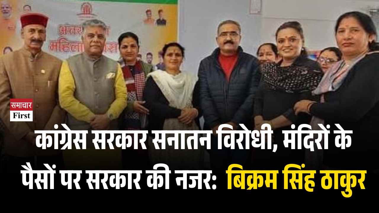 इस कार्यक्रम के दौरान बिक्रम सिंह ठाकुर ने प्रदेश सरकार पर तीखा हमला बोला। उन्होंने कहा कि कांग्रेस सरकार सभी वर्गों को निराश कर रही है। पेंशनर्स, शिक्षक, HRTC कर्मचारी और बिजली बोर्ड के कर्मचारी सभी सरकार की नीतियों से असंतुष्ट हैं। उन्होंने सरकार पर सनातन संस्कृति के विरोध का आरोप लगाते हुए कहा कि मंदिरों के पैसों को सरकारी योजनाओं में खर्च करने की योजना गलत है। मंदिरों की आय का उपयोग मंदिरों और आसपास के क्षेत्रों के विकास में होना चाहिए, न कि सरकार के अन्य खर्चों में।