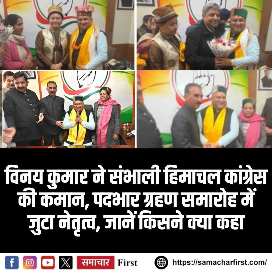 ➤ विनय कुमार ने हिमाचल प्रदेश कांग्रेस अध्यक्ष का पदभार संभाला; समारोह में सीएम व डिप्टी सीएम शामिल