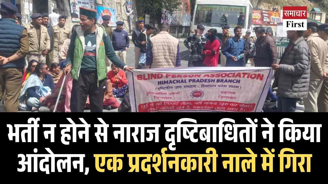 Visually Impaired Protest Shimla: हिमाचल प्रदेश की राजधानी शिमला में वीरवार को दृष्टिबाधित संघ के सदस्यों ने सचिवालय के बाहर जोरदार प्रदर्शन किया। संघ के सदस्य लंबे समय से बैकलॉग भर्तियों की मांग कर रहे हैं, लेकिन सरकार द्वारा उनकी मांगों को नजरअंदाज करने के चलते उन्होंने आंदोलन का रास्ता अपनाया। प्रदर्शन के दौरान एक दृष्टिहीन व्यक्ति नाले में गिर गया, जिसे तुरंत पुलिस ने बाहर निकाला।