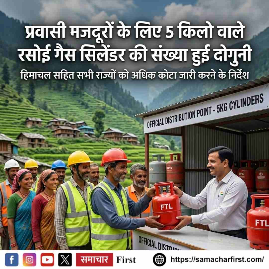 : केंद्र सरकार ने प्रवासी मजदूरों को बड़ी राहत देते हुए 5 किलोग्राम वाले FTL (Free Trade LPG) सिलेंडरों की दैनिक आपूर्ति को दोगुना करने का निर्णय लिया है। पेट्रोलियम और प्राकृतिक गैस मंत्रालय के सचिव डॉ. नीरज मित्तल द्वारा जारी पत्र के अनुसार, अब राज्यों में प्रवासी श्रमिकों के लिए उपलब्ध सिलेंडरों की संख्या उनकी औसत दैनिक आपूर्ति से डबल कर दी गई है। यह व्यवस्था हिमाचल प्रदेश जैसे राज्यों के लिए भी अत्यंत महत्वपूर्ण होगी, जहां निर्माण कार्यों और अन्य क्षेत्रों में बड़ी संख्या में प्रवासी मजदूर कार्यरत हैं।
