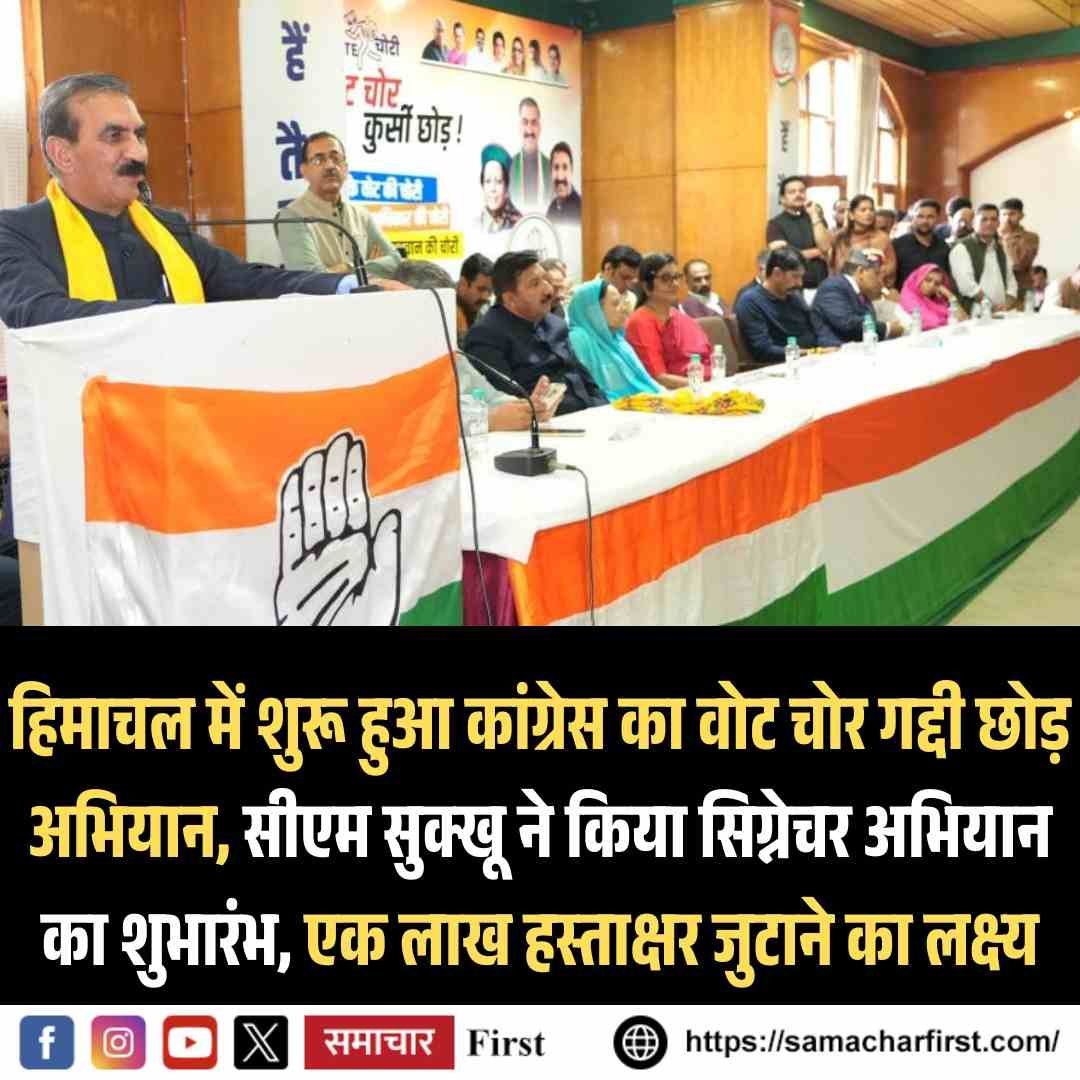 ➤ हिमाचल में कांग्रेस का “वोट चोर गद्दी छोड़” सिग्नेचर अभियान शुरू