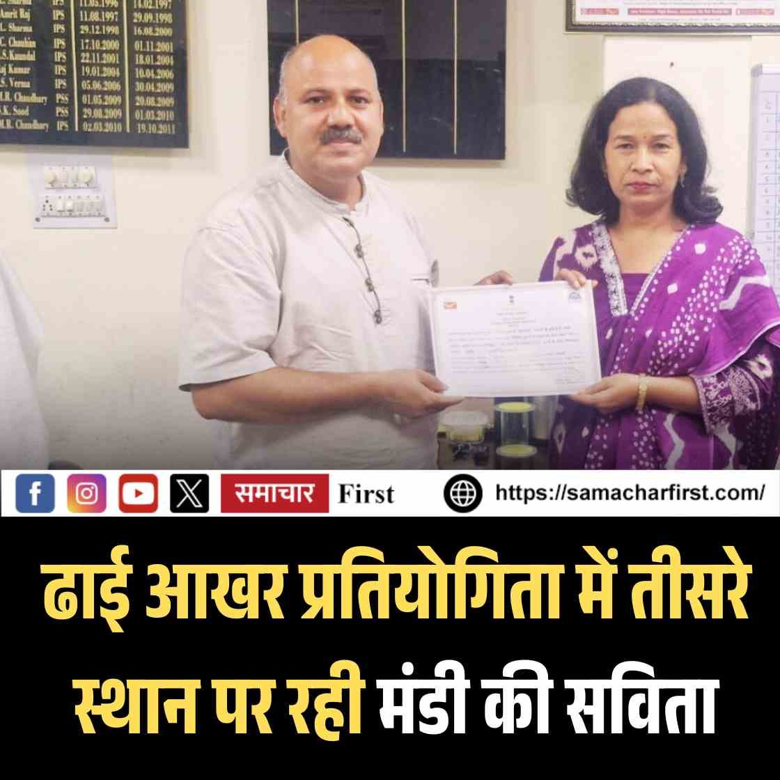 ढाई आखर प्रतियोगिता में तीसरे स्थान पर रही मंडी की सविता