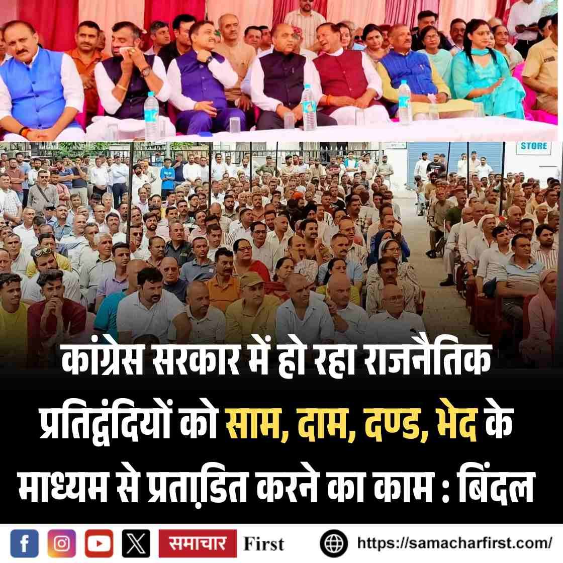 कांग्रेस सरकार में हो रहा राजनैतिक प्रतिद्वंदियों को साम, दाम, दण्ड, भेद के माध्यम से प्रताडि़त करने का काम : बिंदल