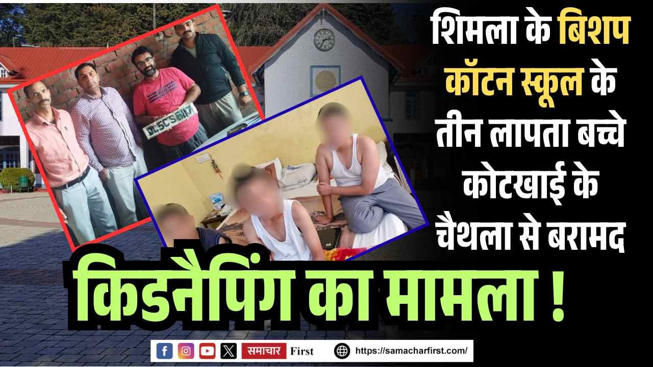 हिमाचल प्रदेश के शिमला में प्रतिष्ठित बिशप कॉटन स्कूल (BCS) के तीन बच्चे लगभग एक दिन तक लापता रहने के बाद पुलिस ने कोटखाई के चैथला क्षेत्र से सुरक्षित बरामद कर लिया है। ये बच्चे छठी कक्षा के छात्र हैं, जिनमें एक हिमाचल के कुल्लू, दूसरा पंजाब के मोहाली और तीसरा हरियाणा के करनाल का रहने वाला है। इन बच्चों के नाम अंगद, हितेंद्र और विदांश बताए गए हैं। शुरुआती जानकारी के मुताबिक किडनैपिंग का मामला लग रहा है। पुलिस जांच कररही है।